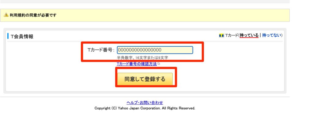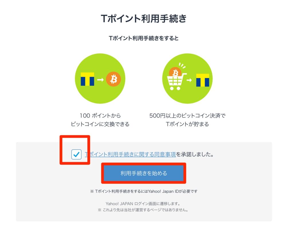 「Tポイント利用手続きに関する同意事項を承諾しました」にチェックをいれて