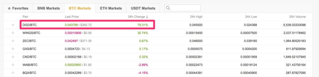 同日のバイナンスでの値上がり銘柄もDGDが一番大きく上げています。