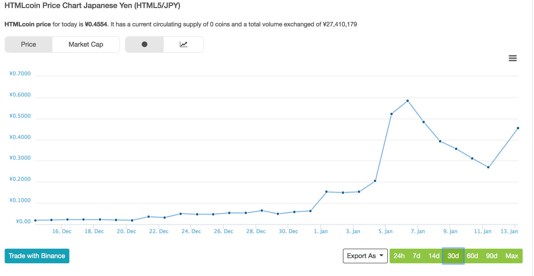 | Htmlcoin チャート | HTMLcoin Price Chart (HTML5/JPY) | CoinGecko |