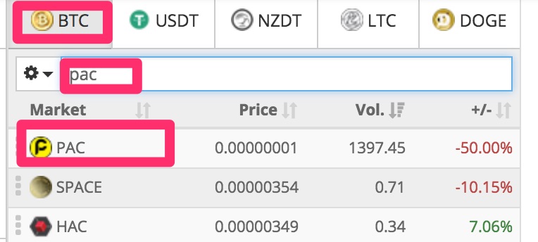 - Cryptopiaでビットコインを使ってPaccoinコインを購入