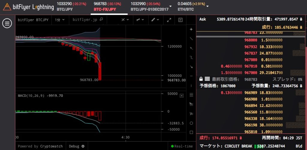 ビットコイン急落でロスカット多発でサーキットブレイカー発動ビットコイン急落でロスカット多発でサーキットブレイカー発動
